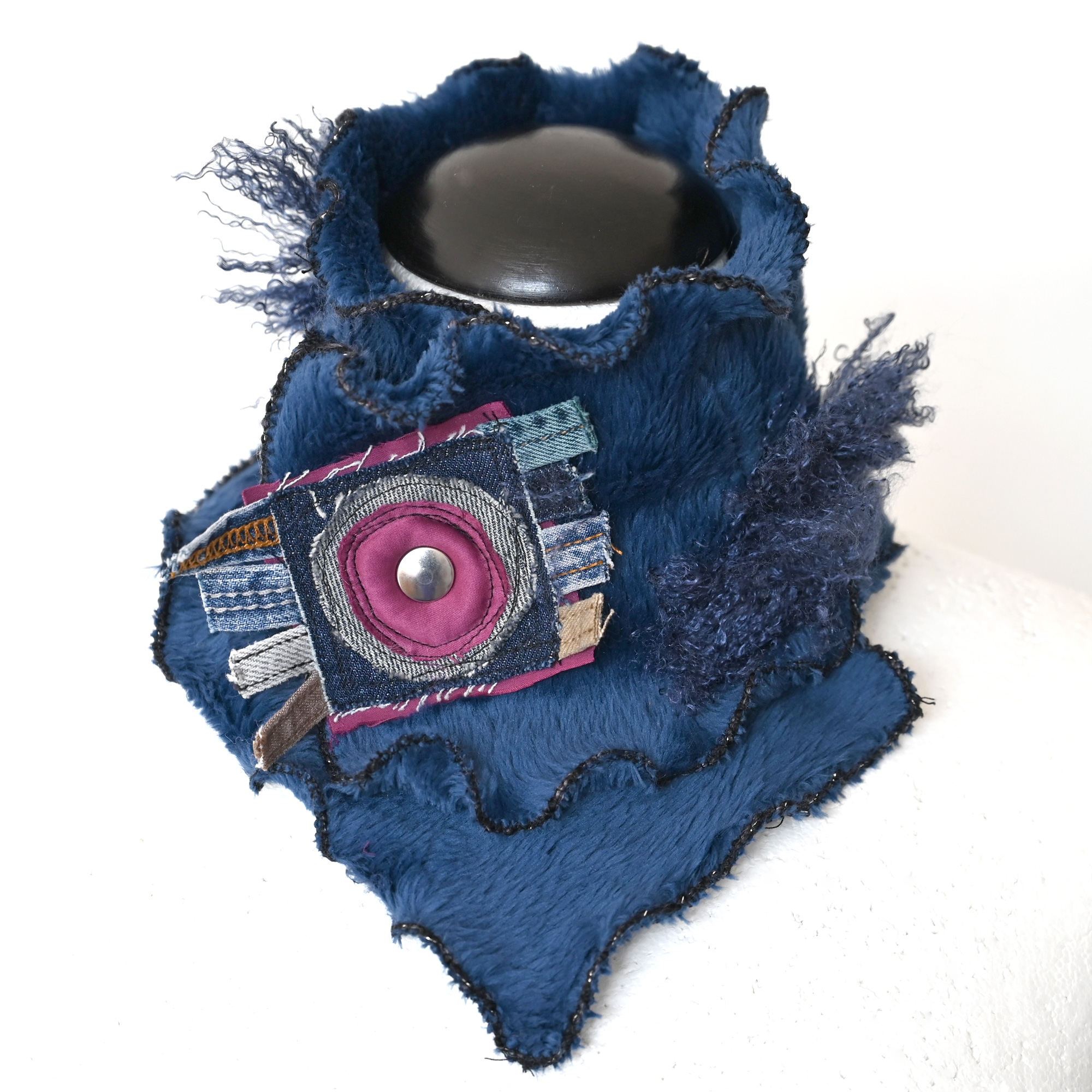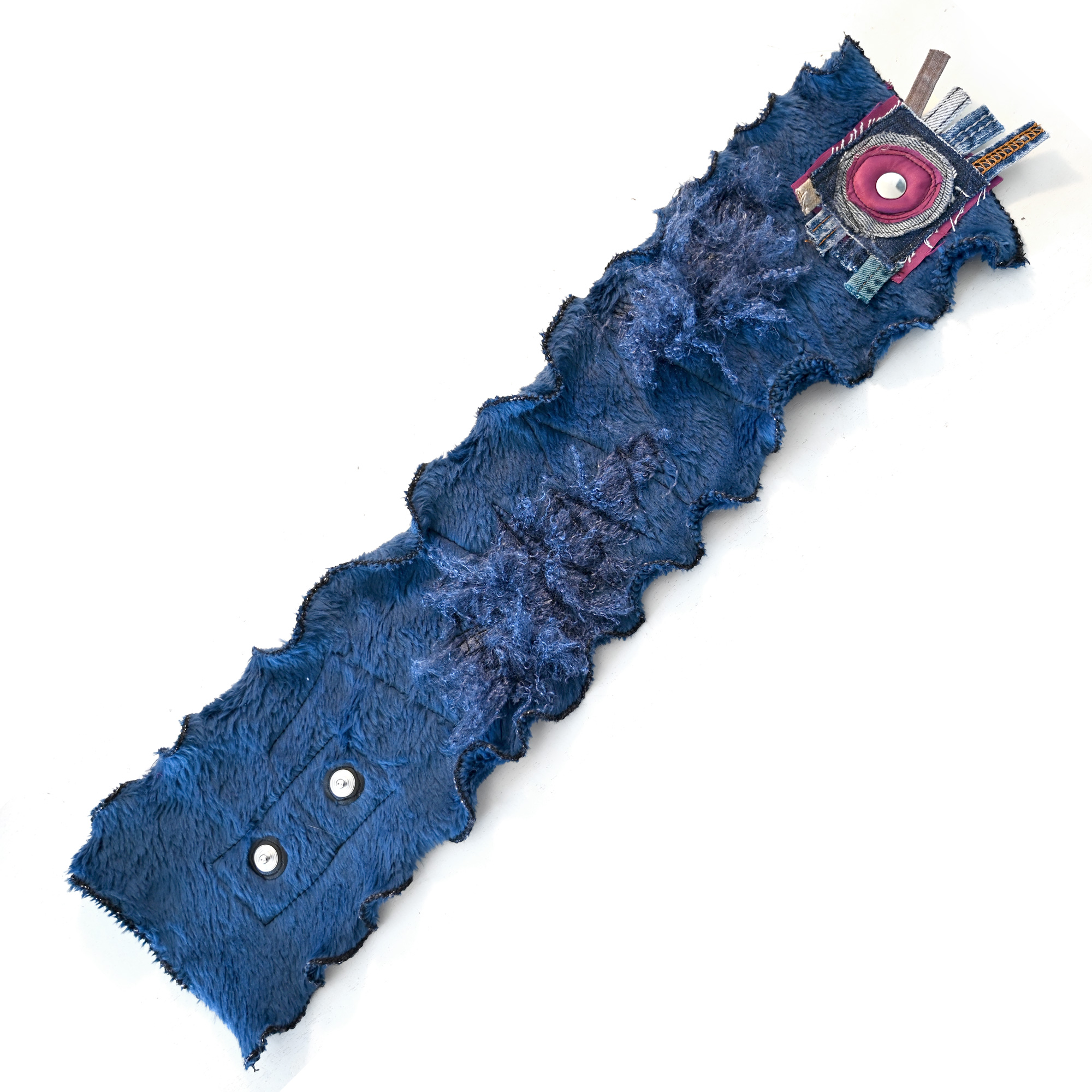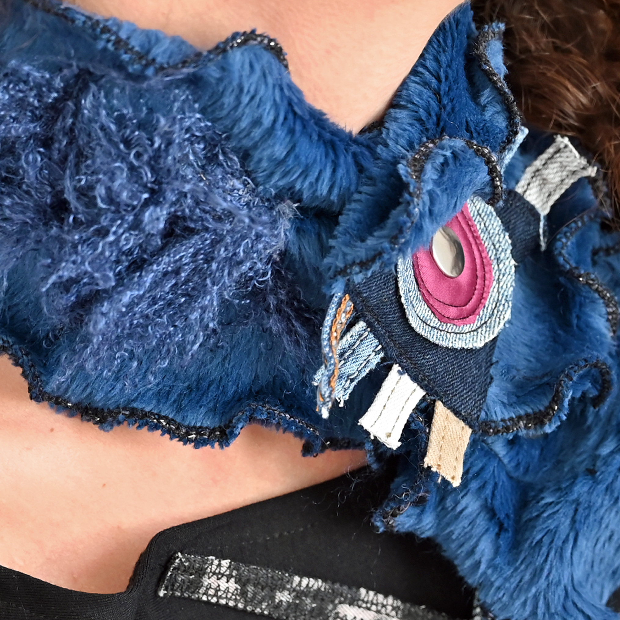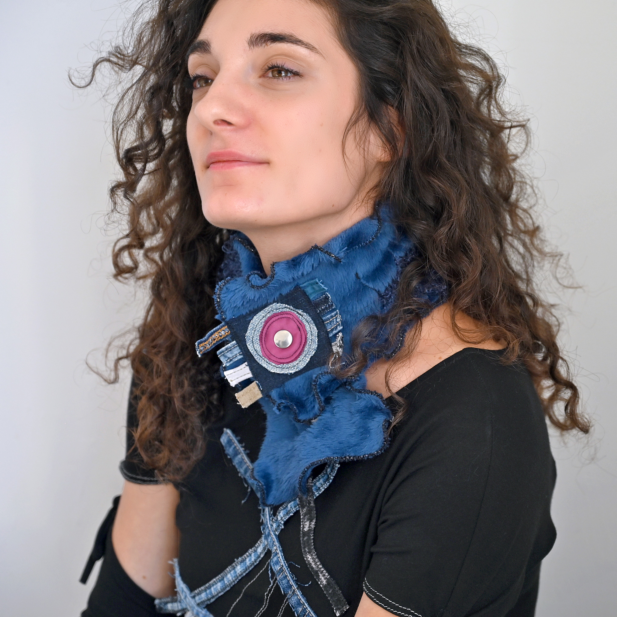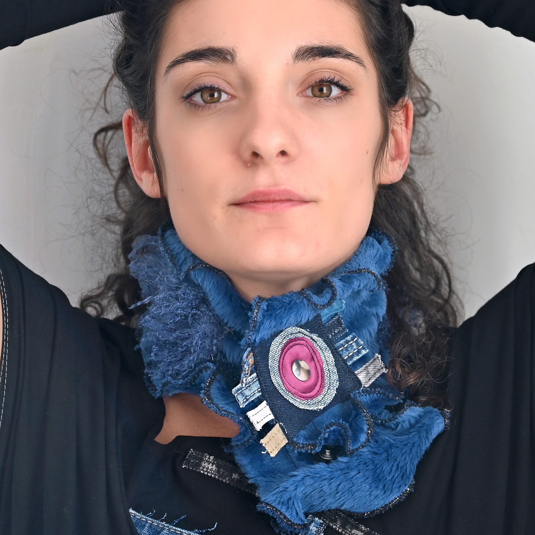 Mini scarf, fastens around the neck. Soft and faux fur. Dimensions about 58 x 14 cm.