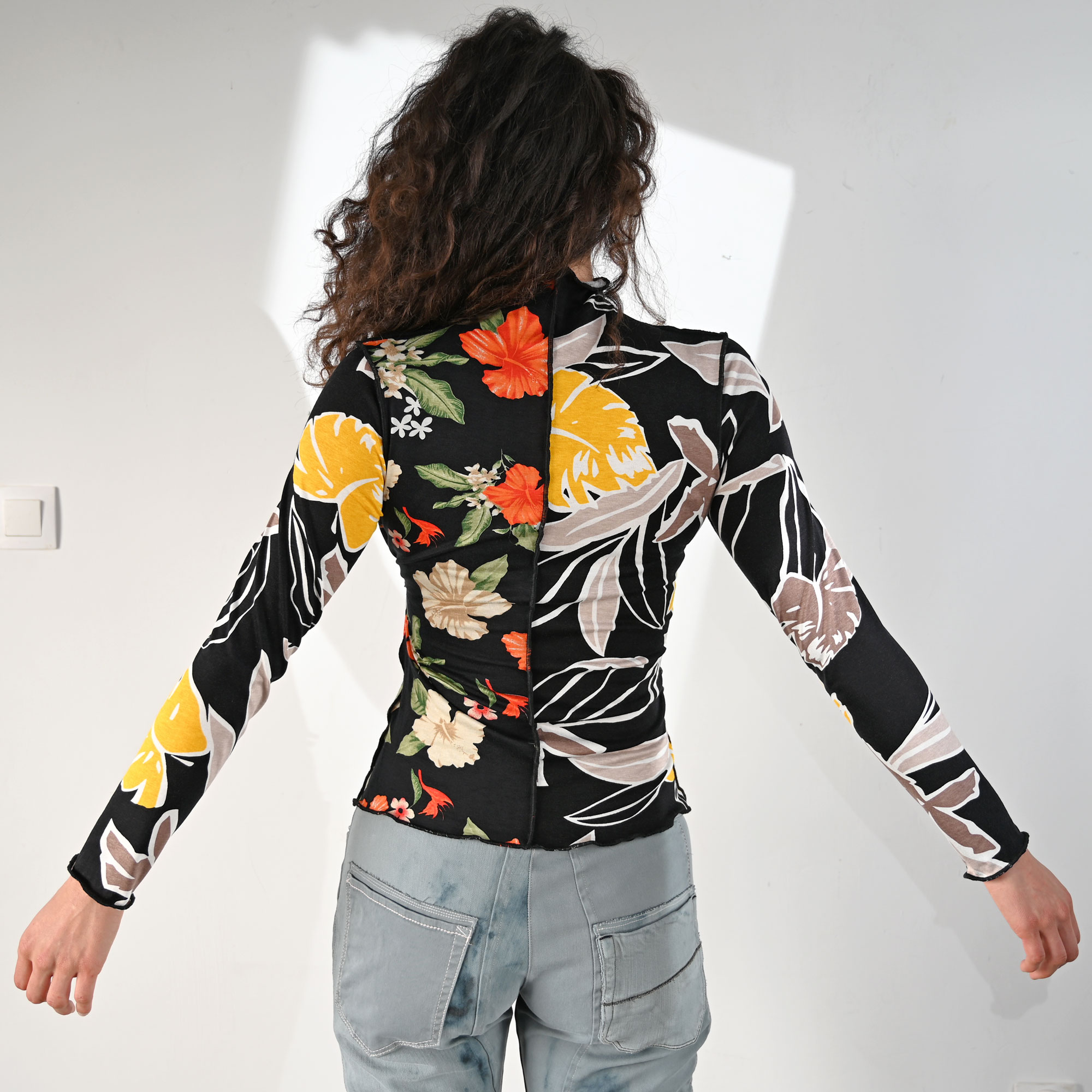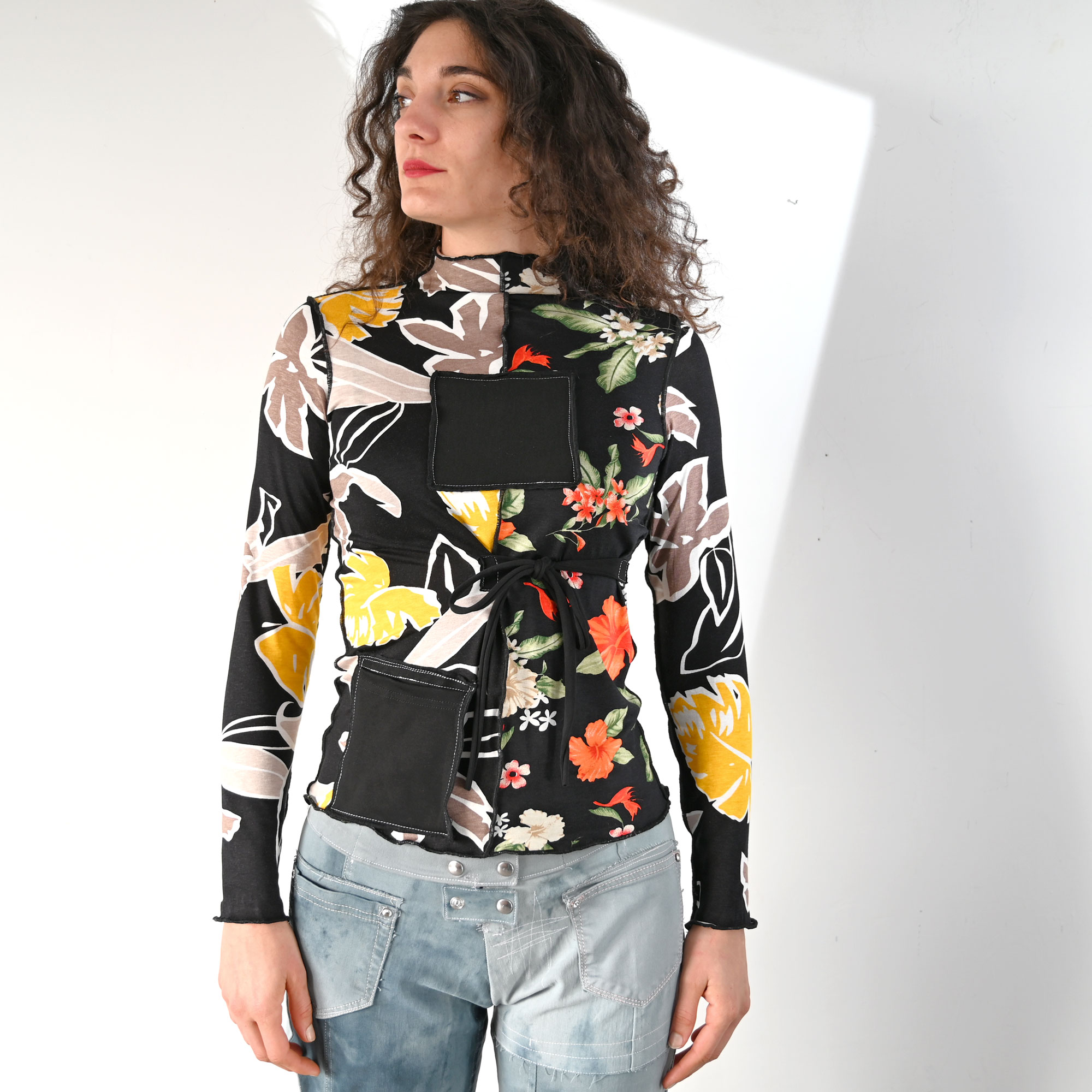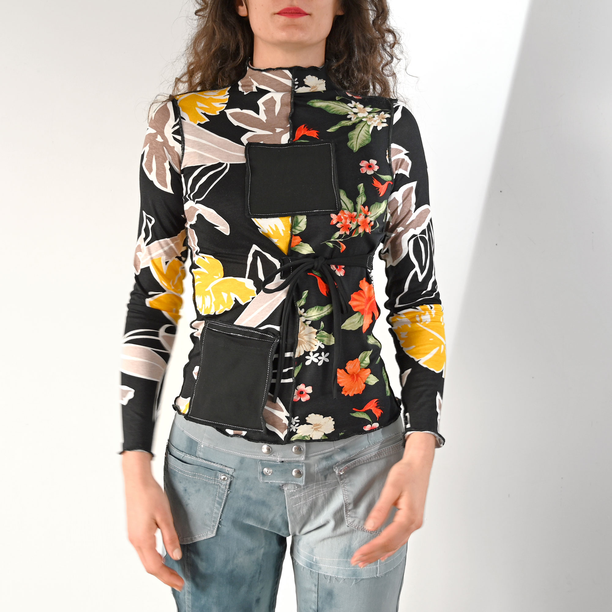 Energetic half turtleneck made of viscose jersey with elastane. With a semi-free pocket. About 60 cm long.