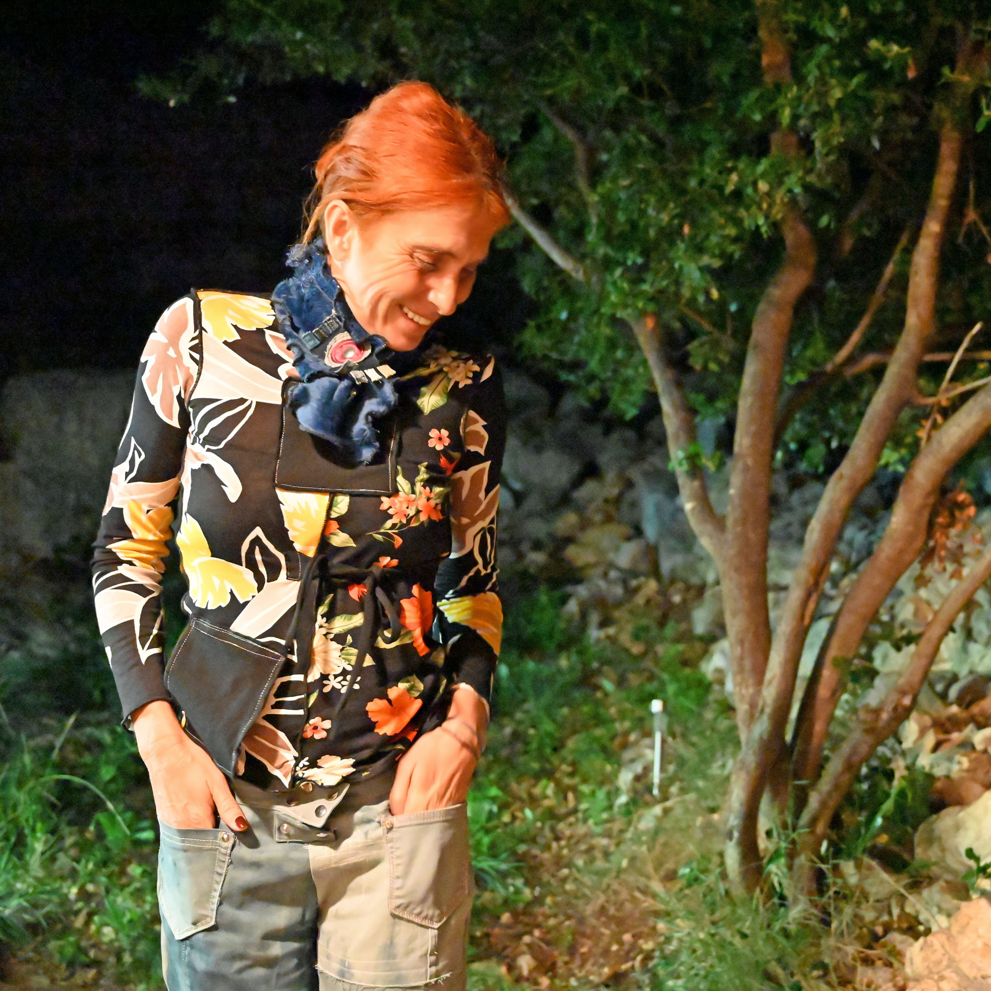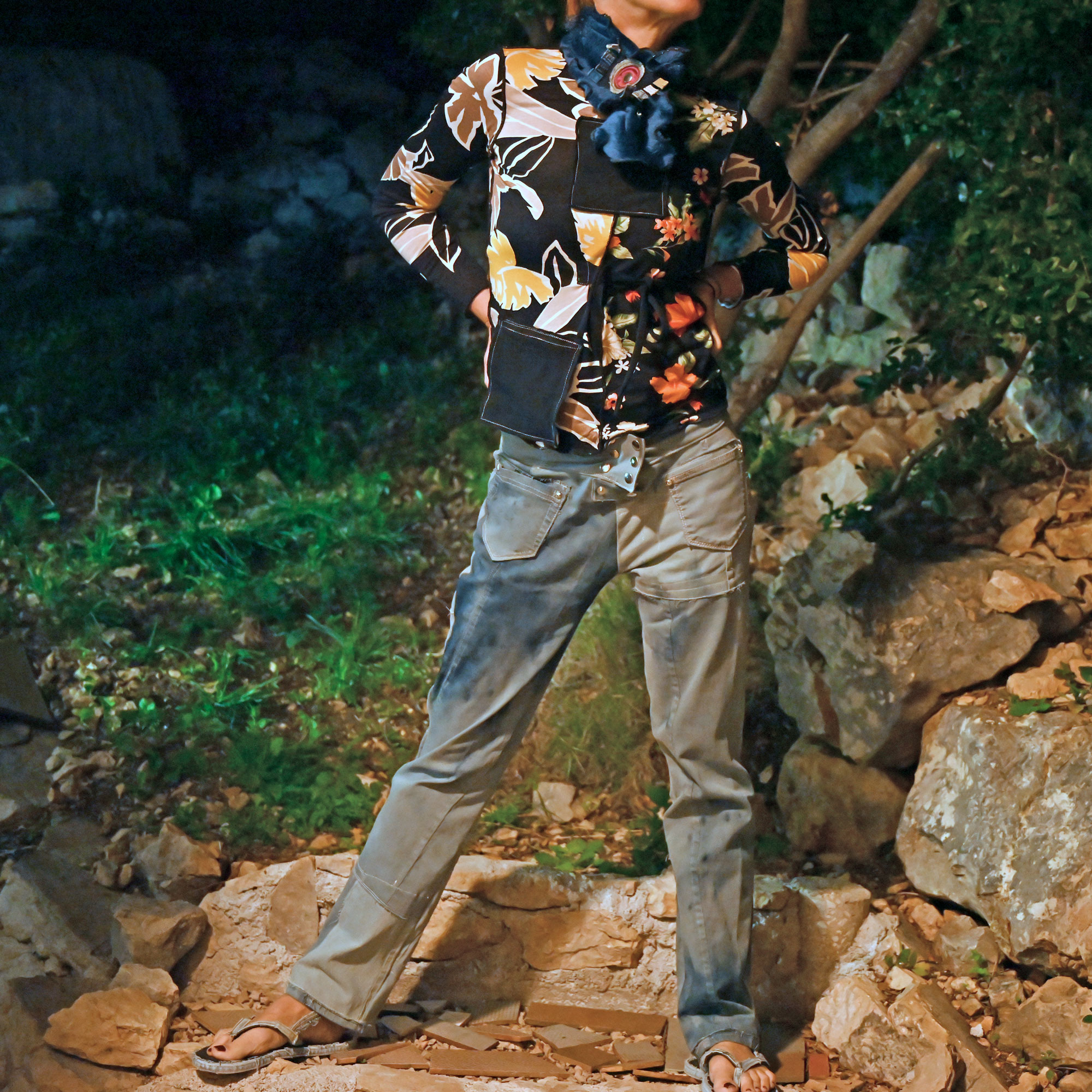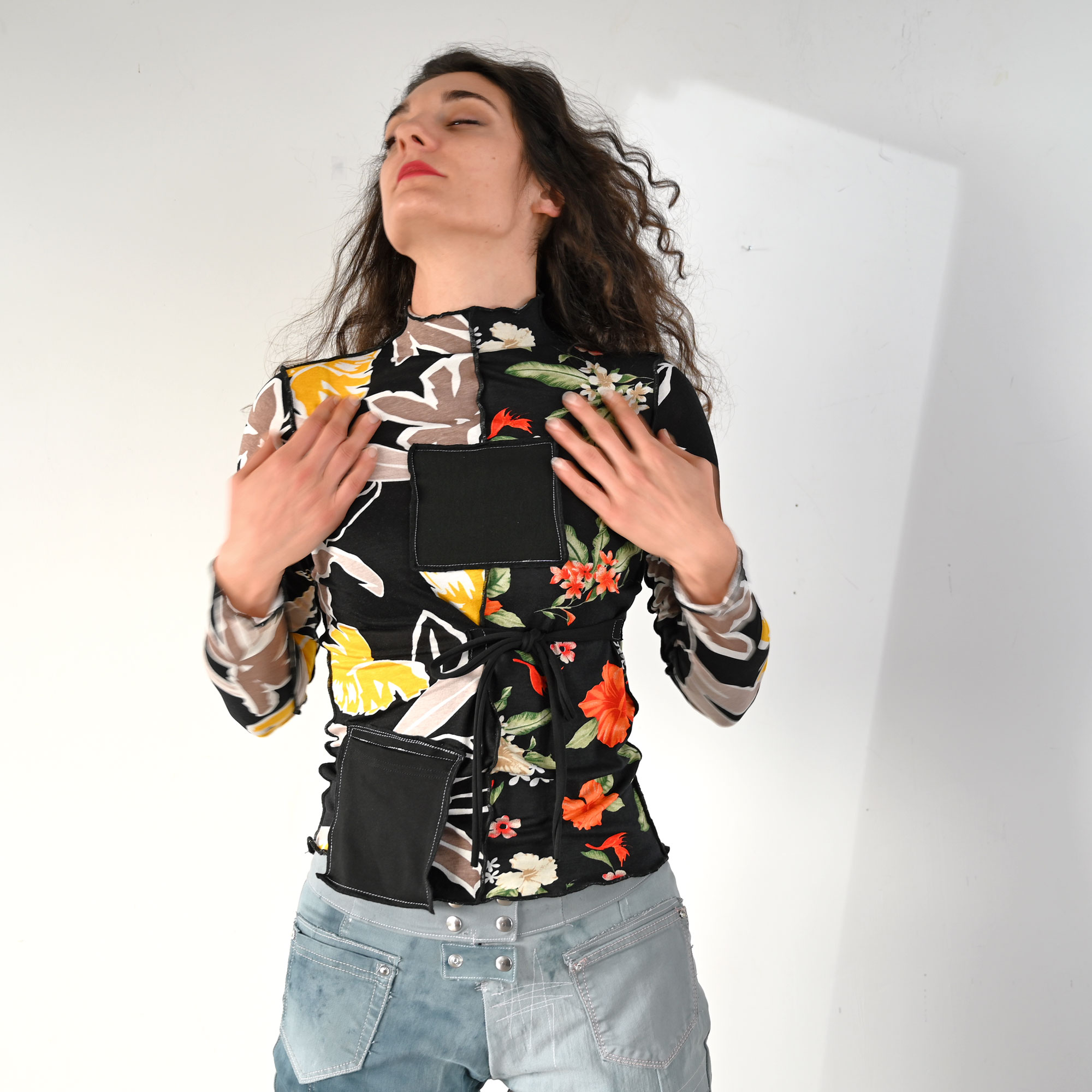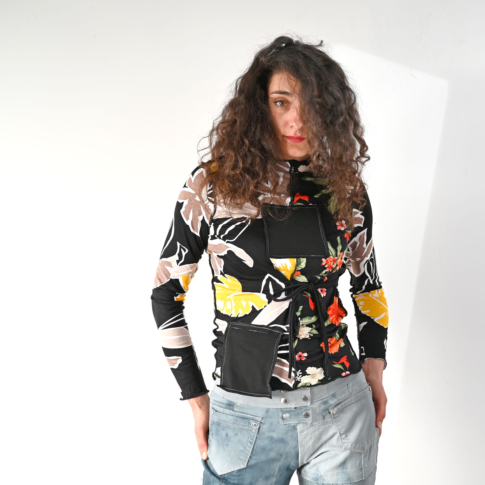 Energetic half turtleneck made of viscose jersey with elastane. With a semi-free pocket. About 60 cm long.